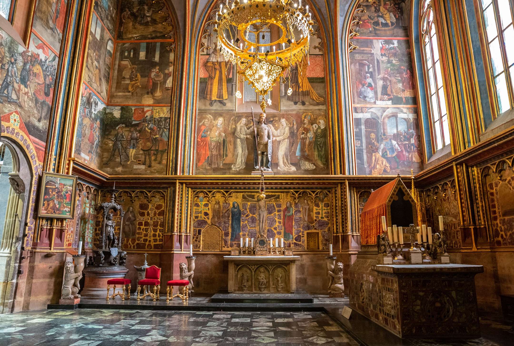 This hall takes pride in being one of the largest ones of its kind in Prague castle inside. A lot of state and public events are hosted here, like the swearing in ceremony of the President of the Czech Republic, theatre performances, and even coronation banquets, and is more than 500 years old. The Prague castle interior features a blend of Gothic style and the early Renaissance architecture and is located close to the All Saints Church.